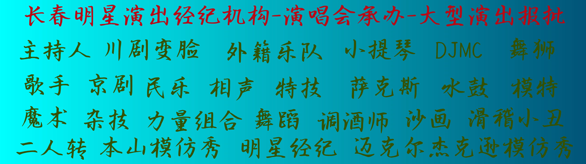 長(zhǎng)春演出公司-承接中大型演出策劃執(zhí)行,企業(yè)年會(huì)演出,校慶廠慶演出,公司開(kāi)業(yè)演出,明星經(jīng)紀(jì)演出,晚會(huì),發(fā)布會(huì),答謝會(huì)演出,音樂(lè)節(jié),啤酒節(jié)演出。